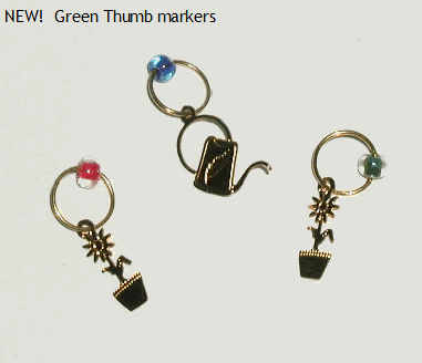 New! Stop 'n Go Knitting Markers Sterling silver beaded markers. Keep track of every-other-row increases or decreases using these pretty colored indicators as reminders. Each package contains sets of 2 intertwined markers, in medium and large sizes. Helpful for many lace patterns, heel gussets, alternating stitch patterns, raglan shaping, etc. Another Elegant way of keeping your place. $11.50 per package